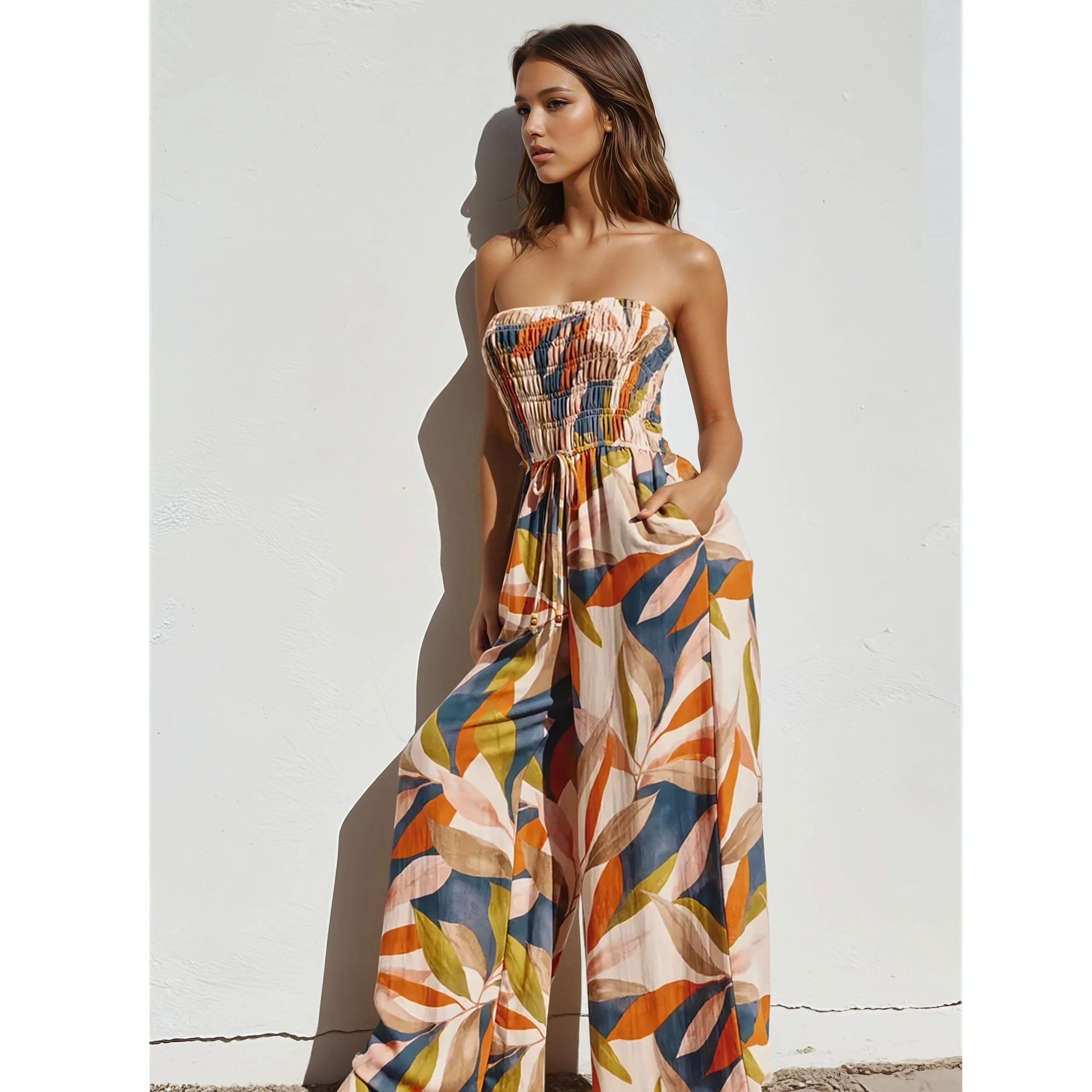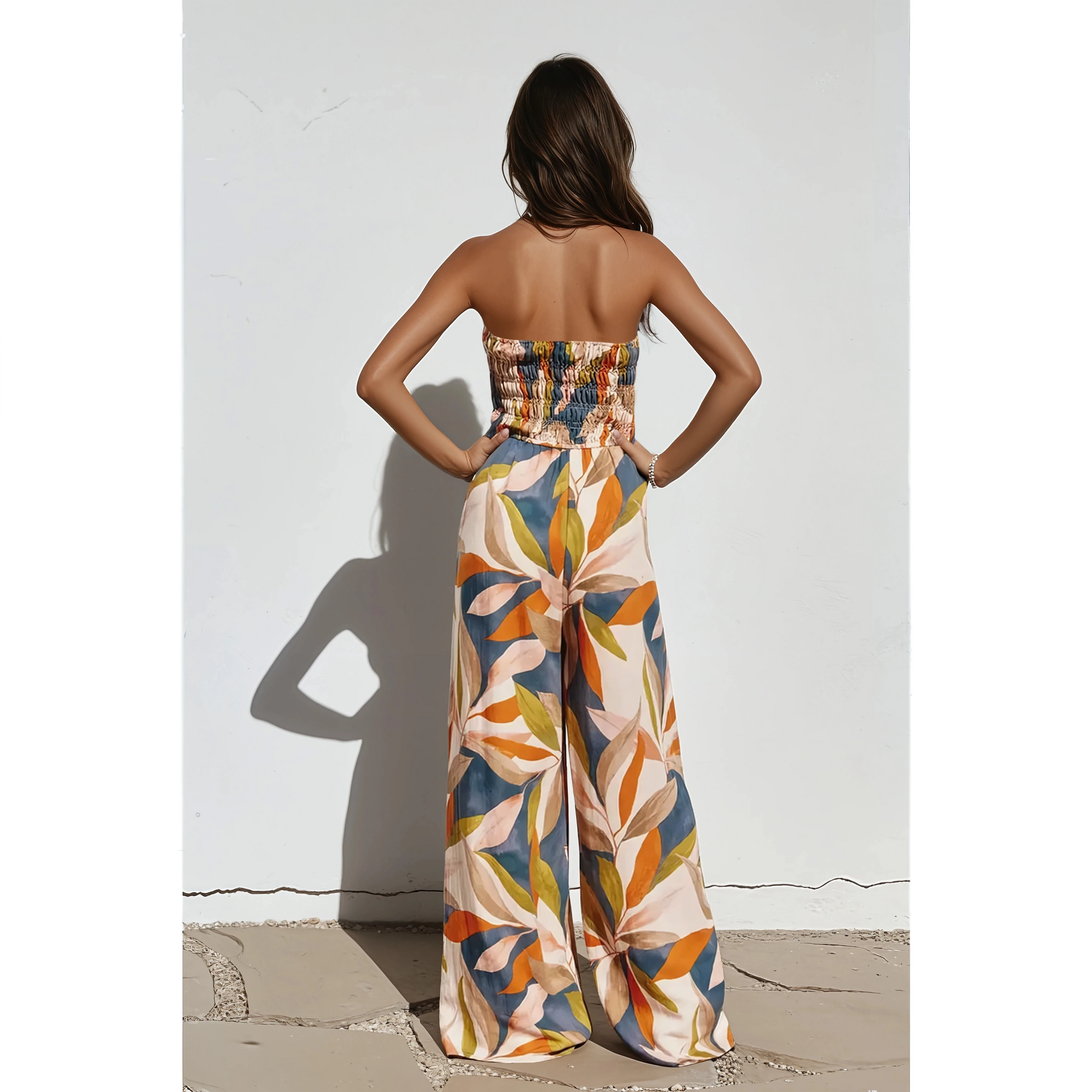 The Paloma Jumpsuit brings the ultimate vacation vibes with its smocked bodice and breezy wide-leg silhouette. Finished with a wooden bead drawstring, the perfect sunny days outfit.